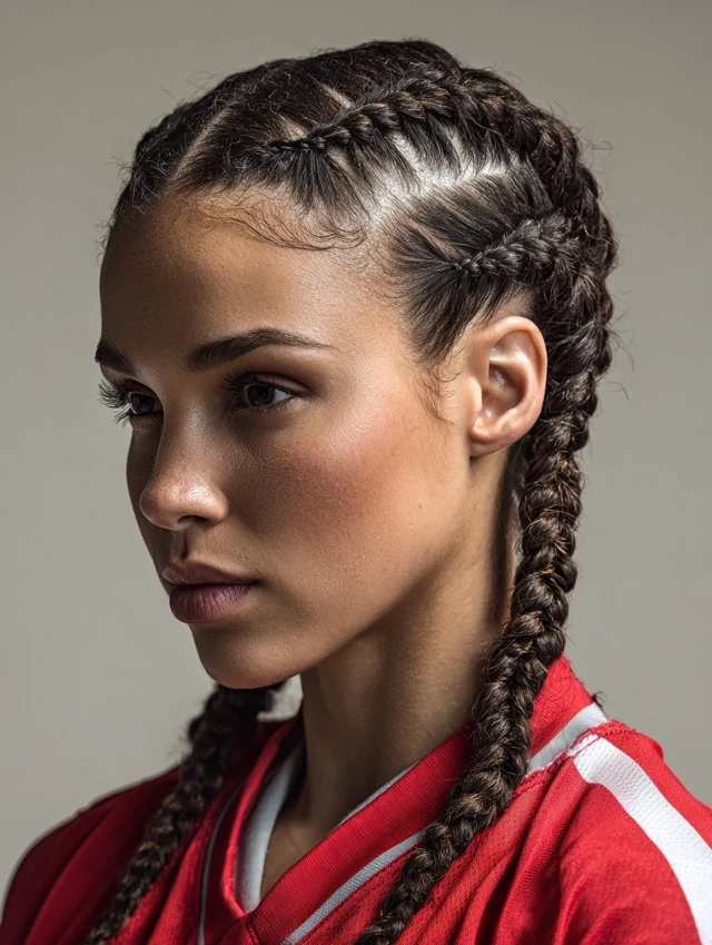 Scalp-hugging braids offer maximum hold and protection, especially for curly or coily hair. They suit all face shapes and last through multiple practices or tournaments.