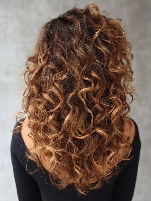 Curly Hair with Honey Caramel Balayage