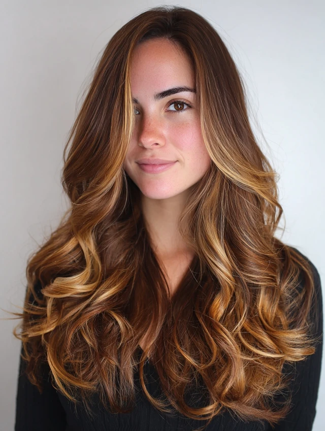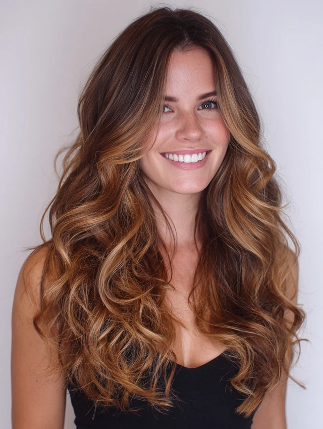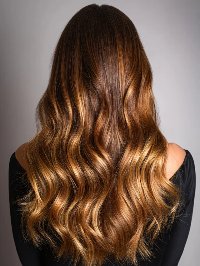 A seamless melt fades from darker roots into honey-caramel tips. The gradual shift keeps everything natural.