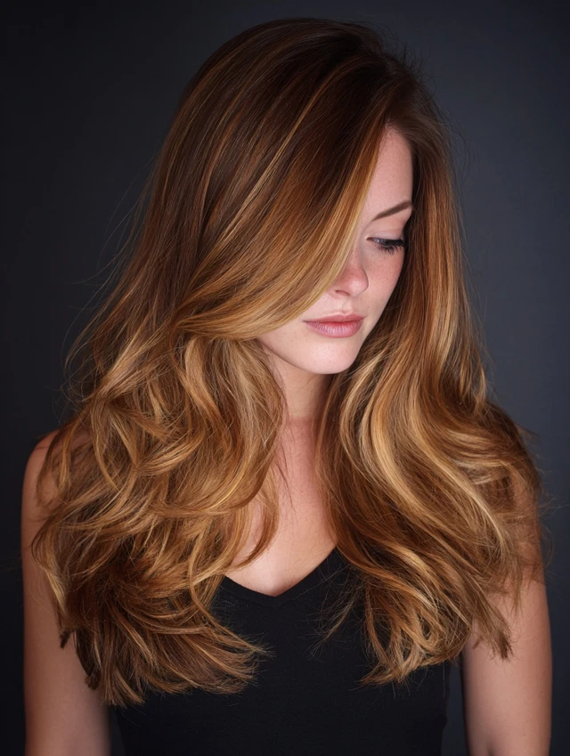 Strategic placement along layered ends enhances movement and glow. The warmth lights up curls and waves beautifully.