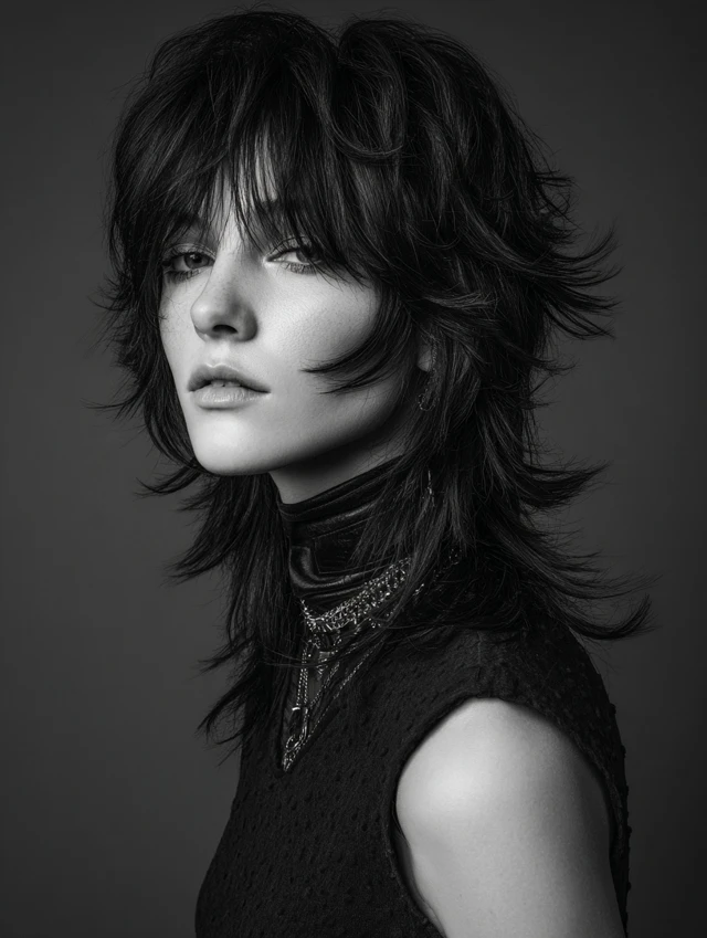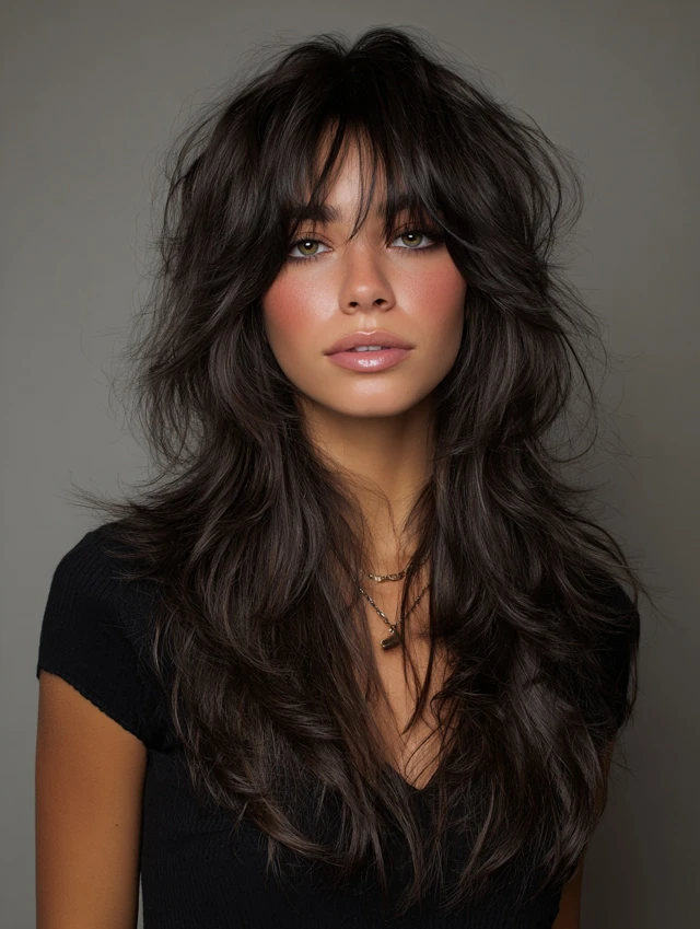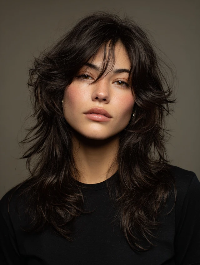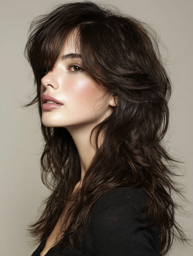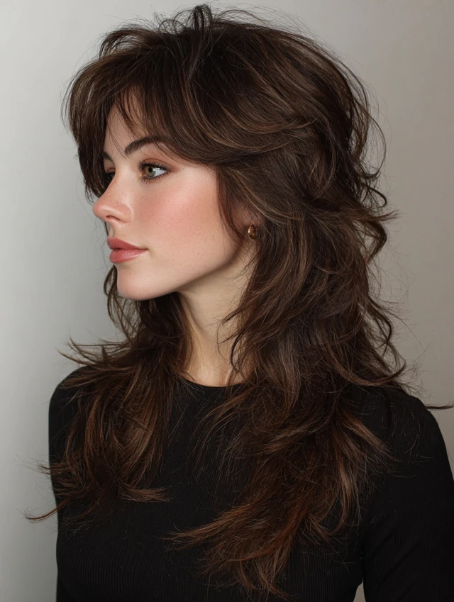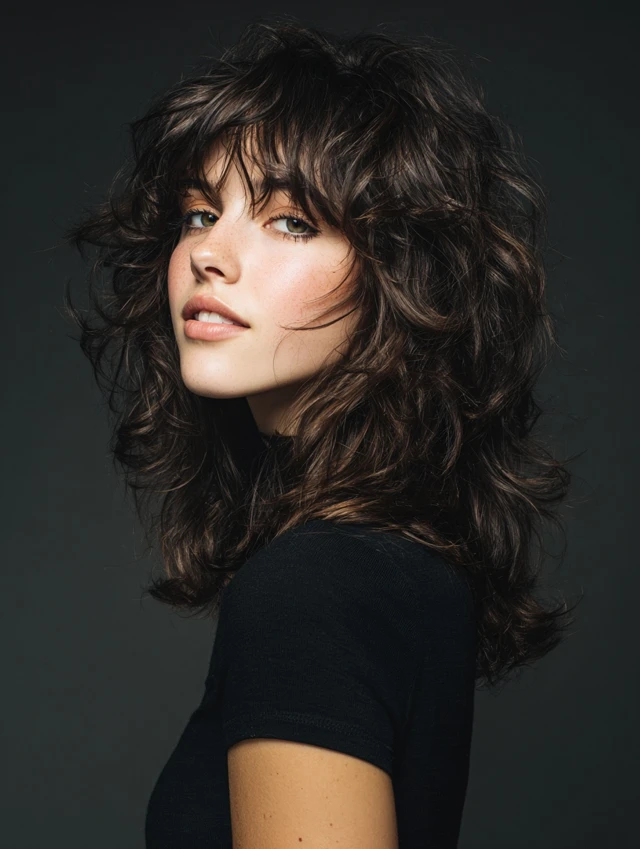 Layered wavy wolf cuts focus on crown volume while tapering ends for natural flow. Layers reduce bulk and create airy texture. Works well for oval or round faces, lifting and elongating the silhouette.
